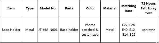 Lamp base holder metal series N001