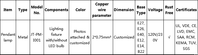 Pendant lamp metal type I001
